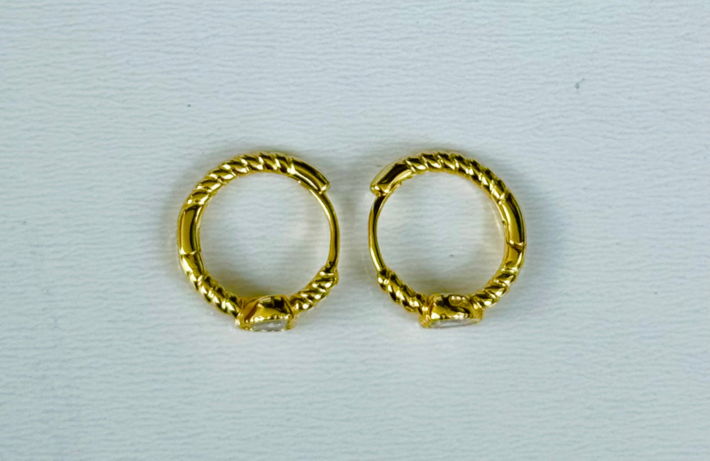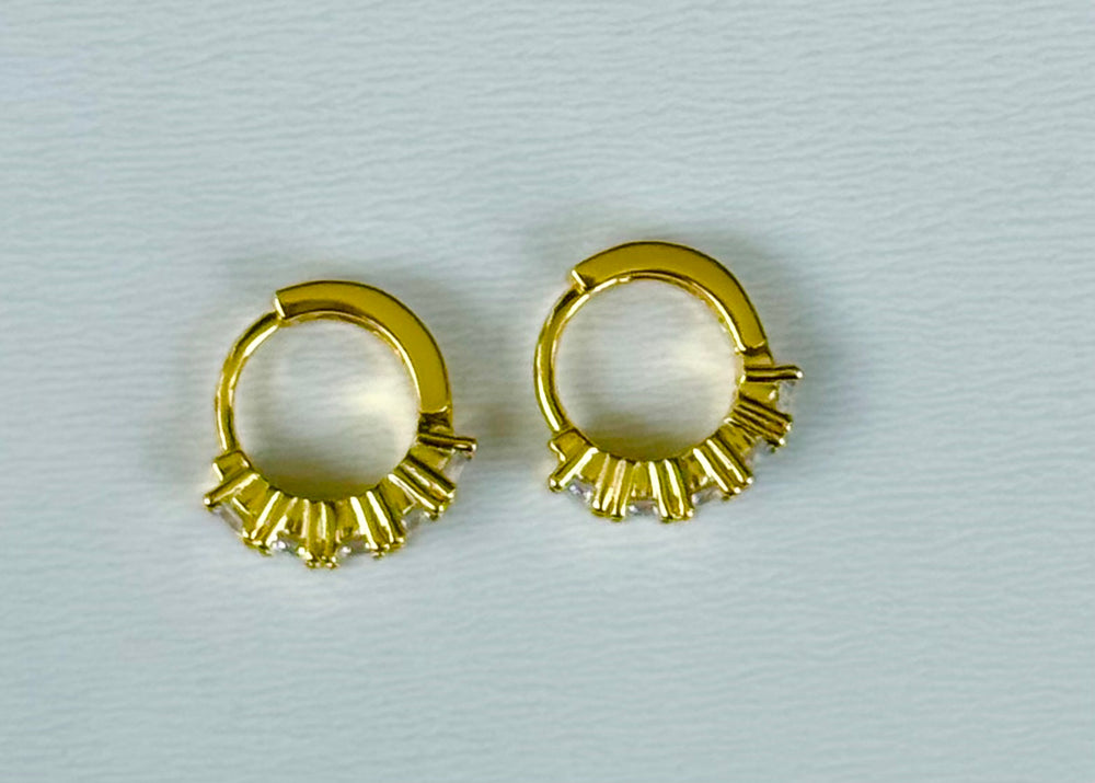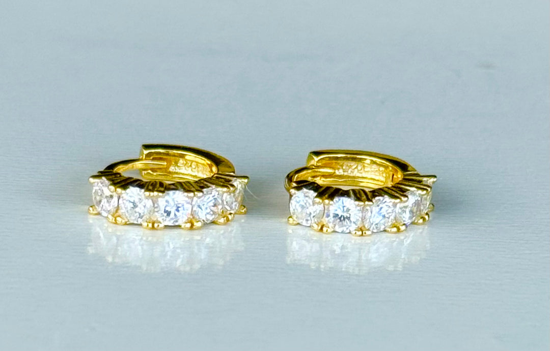 Sterling Silver 14 Karat gold plated classic prong mini Huggie Earrings