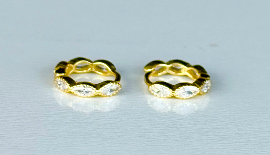 Sterling Silver 14 Karat gold plated mini marquis filigre Huggie Earrings