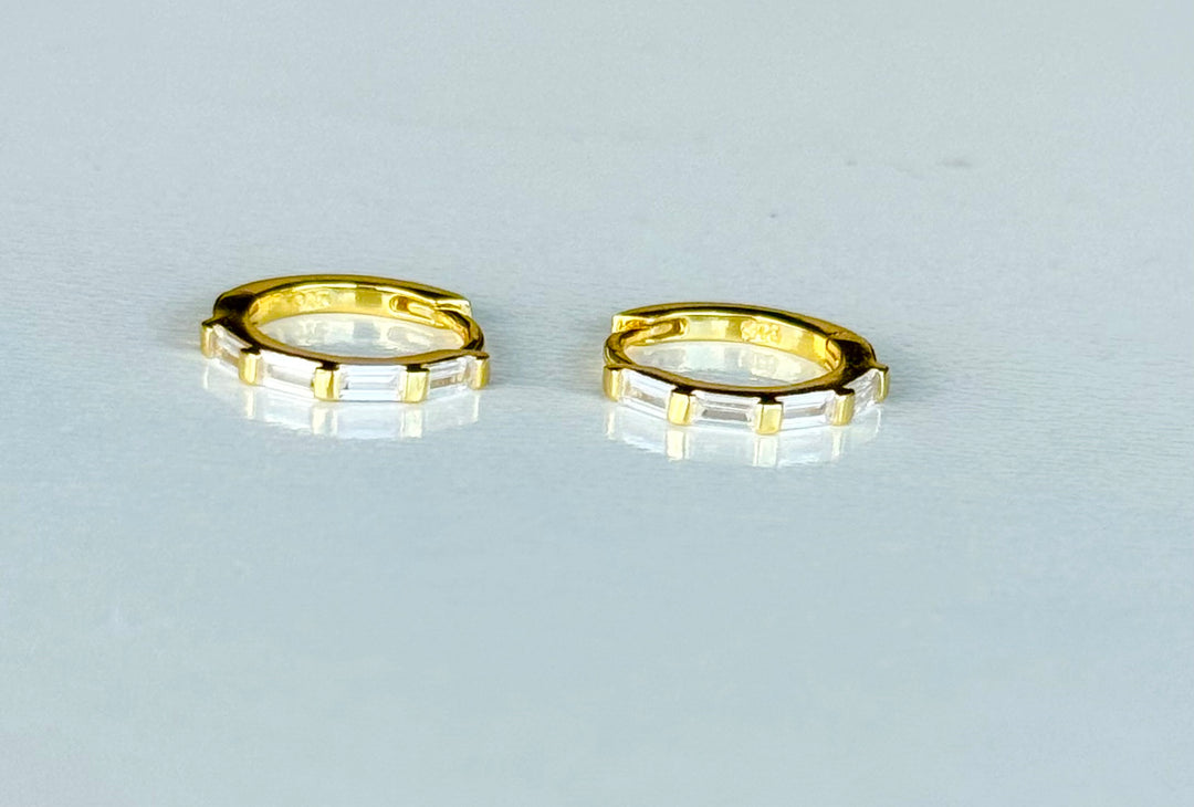 Sterling Silver 14 Karat gold plated mini baguette Huggie Earrings