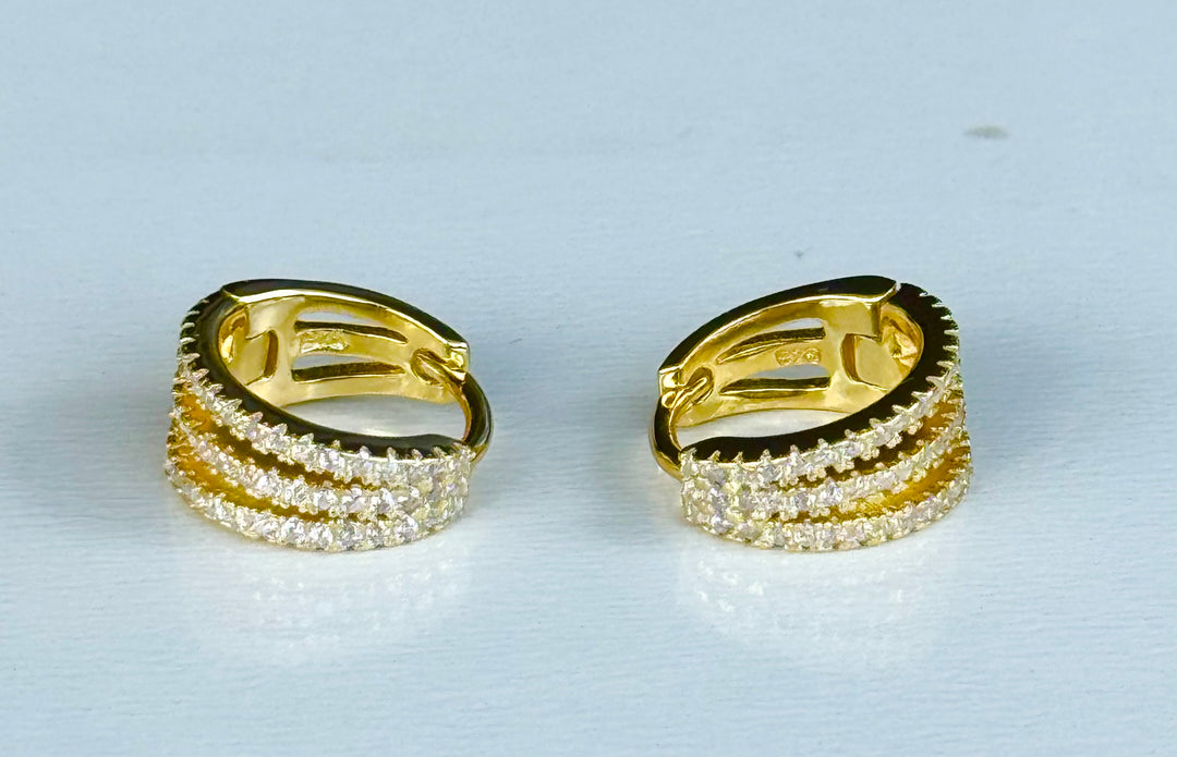 Sterling Silver 14 Karat gold plated 3 Row Huggie Earrings
