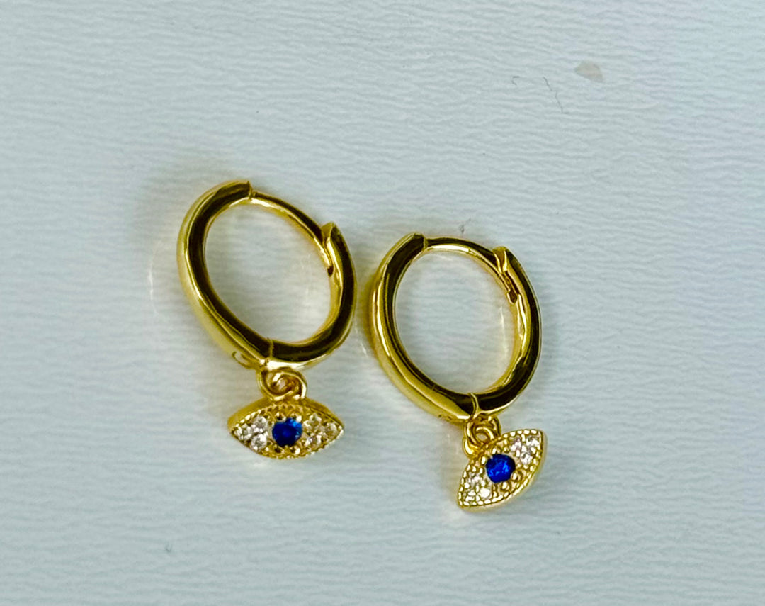 Sterling Silver 14 Karat gold plated mini evil eye Huggie Earrings