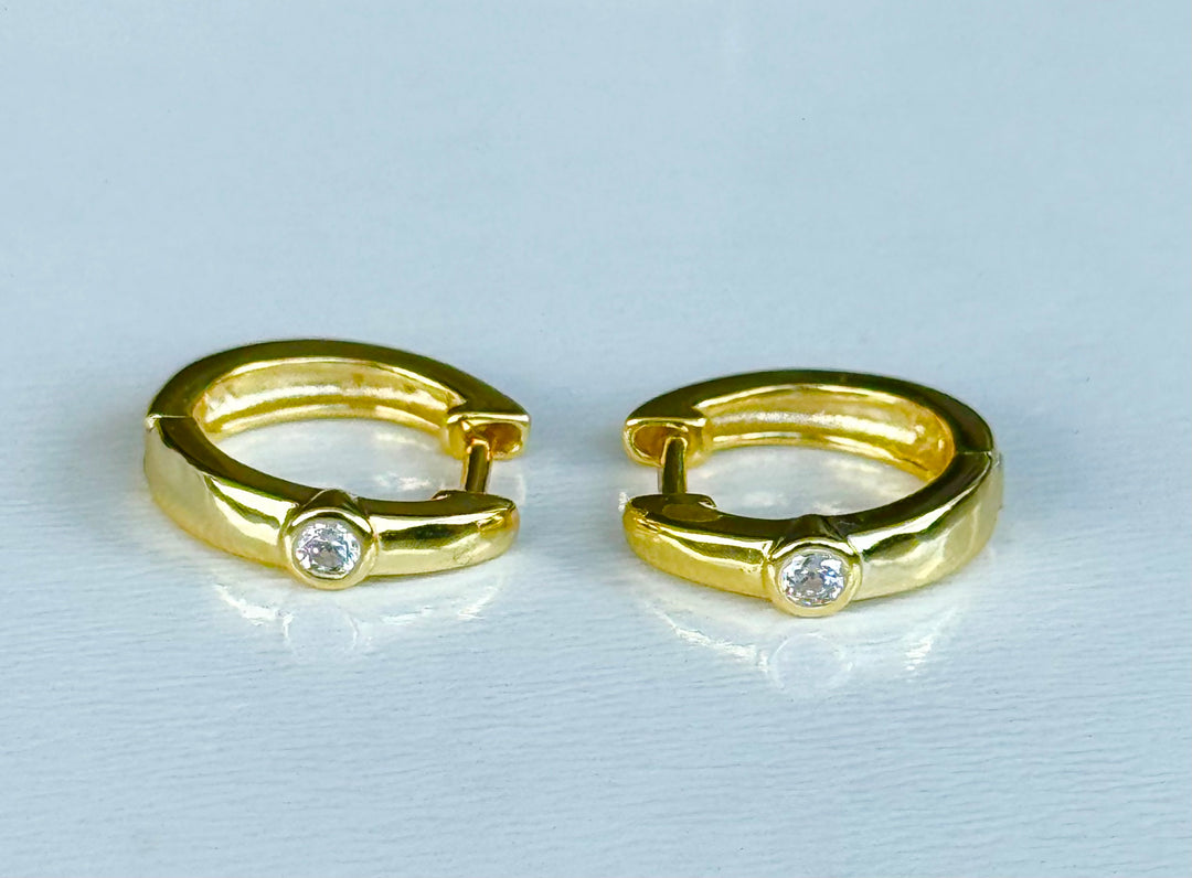 Sterling Silver 14 Karat gold plated Small Bezel Huggie Earrings